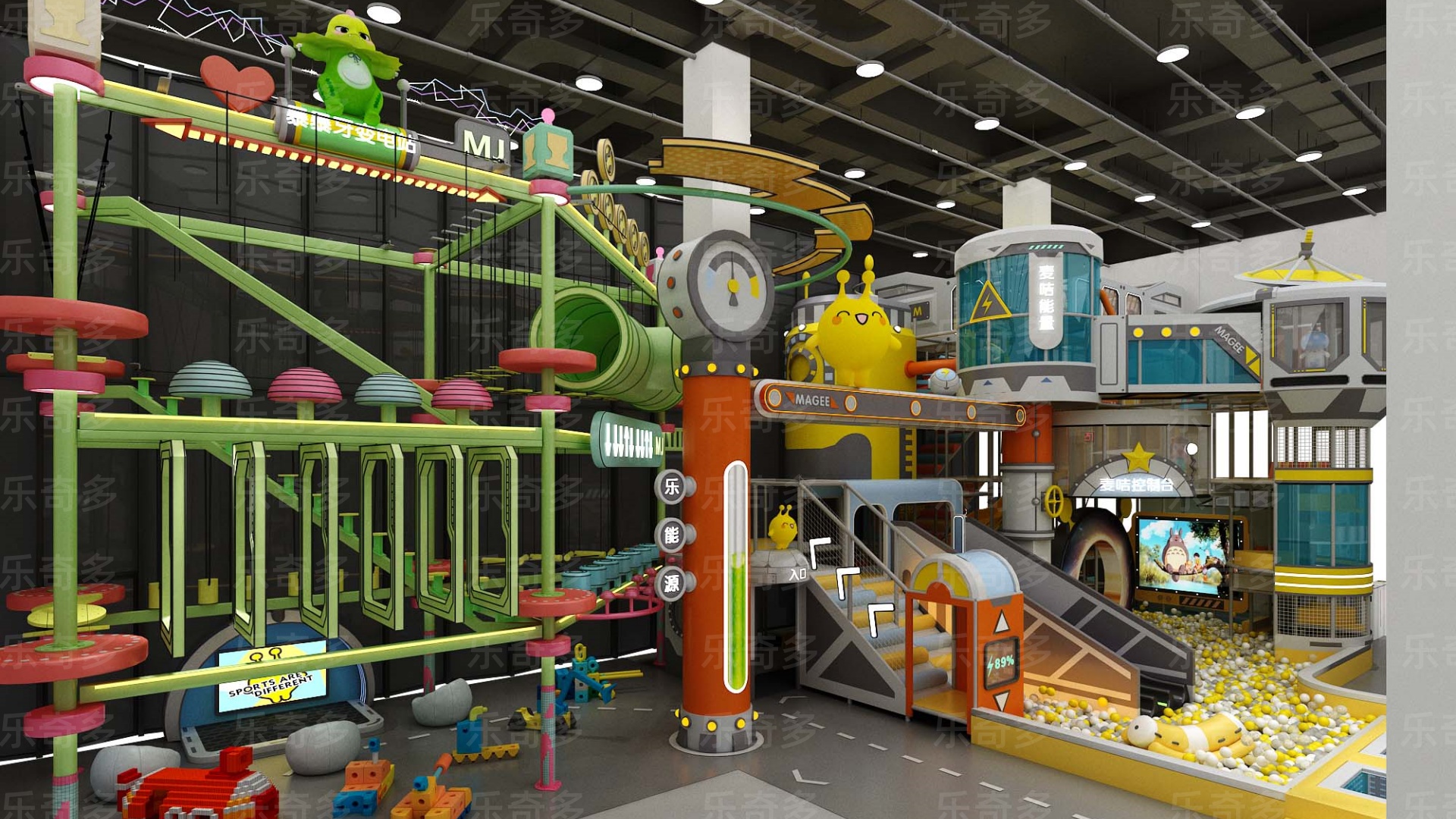 項目玩法:沙池探寶,海洋球池,波浪滑梯,互動投影,組合滑梯,手工區,彈跳迷宮、兒童小蹦床,角色扮演,公主屋,親子餐廳等。